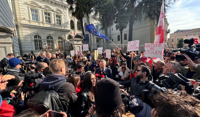 ТБИЛИСИ, 11 ноября – @NGnewsgeorgia. Участники движения «დაიტოვე» с утра провели акцию у резиденции президента в Тбилиси — они приветствовали делегацию депутатов из восьми стран…