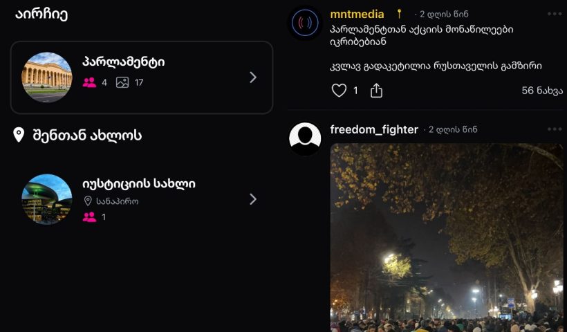 ТБИЛИСИ, 12 декабря – @NGnewsgeorgia. В Грузии создали социальную сеть для участников проевропейских протестных акций. Приложение под названием MNT представил разработчик Ника Шелия. «Создана грузинская…