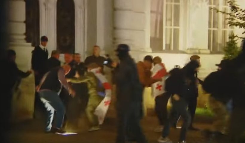 ТБИЛИСИ, 4 октября – @NGnwsgeorgia. Несколько десятков протестующих ворвались во двор президентской резиденции на улице Атонели в центре Тбилиси. Группа мужчин сломала ограждение и напала на…