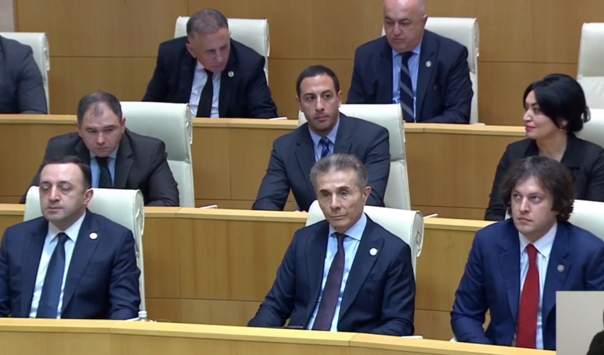 А пока сидящие рядом премьер Ираклий Кобахидзе и его предшественник Ираклий Гарибашвили любезно объяснили основателю правящей партии, как надо голосовать.