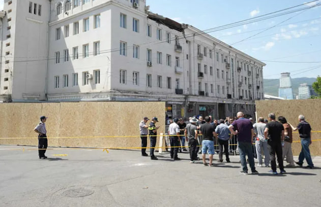 ТБИЛИСИ, 16 июля – @NGnewsgeorgia. Мэрия Тбилиси огородила аварийный дом у вокзальной площади в Тбилиси, часть фасада и крыши которого рухнула на людей в минувший понедельник.