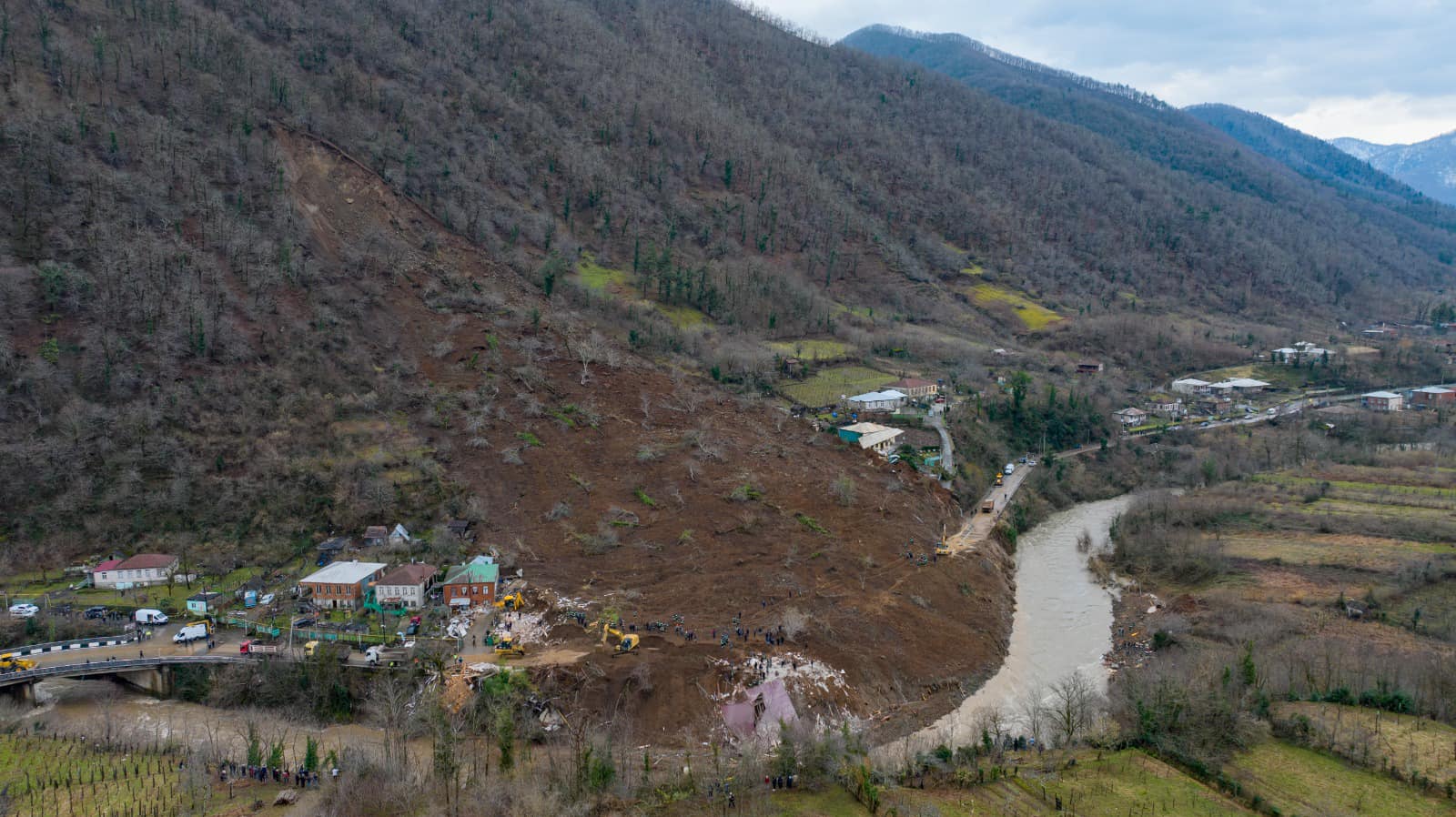 Погибшая – женщина средних лет. Местные жители говорят, что ее тело находилось довольно далеко от места схода оползня, на другом берегу реки Ханисцкали.