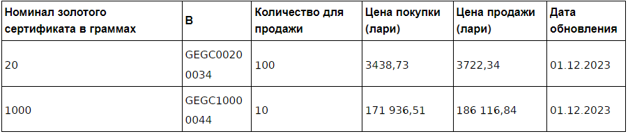 Цена сертификатов-слитков будет корректироваться ежедневно по официальному обменному курсу Лондонской ассоциации рынка драгоценных металлов (LBMA) и текущему курсу лари.