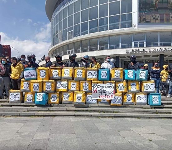ТБИЛИСИ, 15 апреля – Новости-Грузия. Акцию солидарности с противниками строительства Намахвани ГЭС в Цхалтубском районе Грузии провели сегодня в Тбилиси курьеры служб доставки Glovo, Wolt и Bolt…