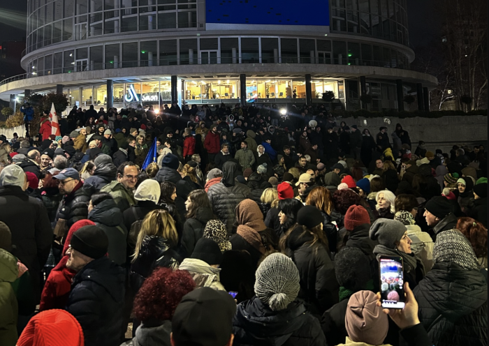 Представители ультралиберальной партии рассказывали о плюсах евроинтеграции. Акция прошла на следующий день после того, как стало известно, что Еврокомиссия не рекомендует давать Грузии статус кандидата в члены ЕС без предварительных условий – сначала страна должна выполнить план реформ из 12 пунктов.