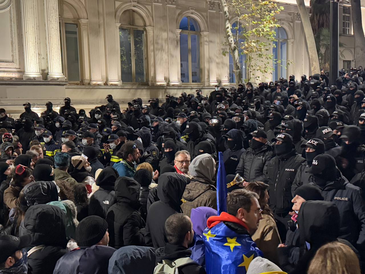 ТБИЛИСИ, 29 ноября – @NGnewsgeorgia. Полиция начала применять спецсредства против протестующих у парламента Грузии в Тбилиси.