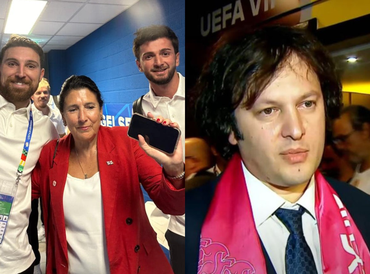 За историческим матчем на стадионе в немецком Гельзенкирхене следили, в частности, президент Саломе Зурабишвили и премьер Ираклий Кобахидзе. Места главы правительства и оппозиционного президента находились в разных частях трибуны.