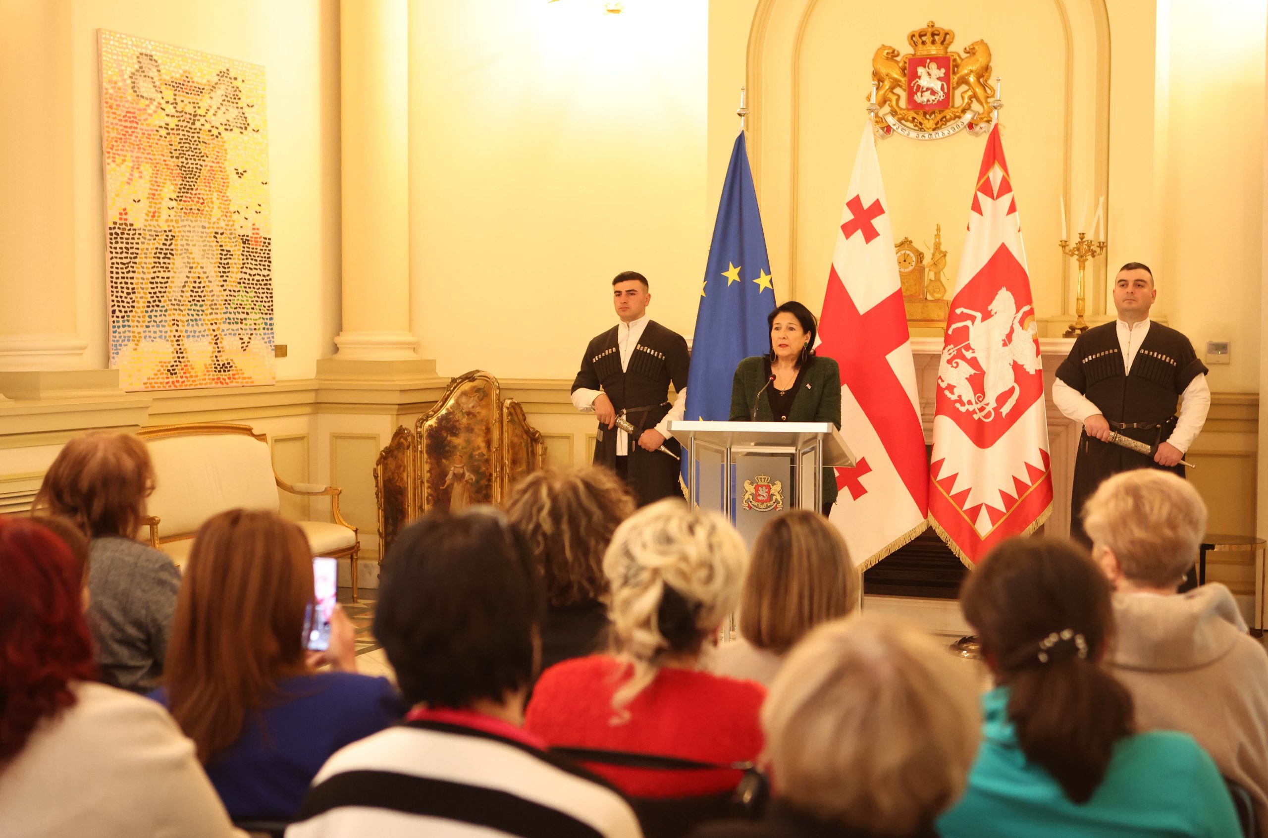 «Насилие в отношении женщин, фемицид или убийства женщин – это прямой позор для страны, когда мы имеем дело с такими явлениями, что прямо противоречит нашей культуре, идентичности и всем тем ценностям, которые нас объединяют», — сказала президент на мероприятии во Дворце Орбелиани, посвященном Международному женскому дню.