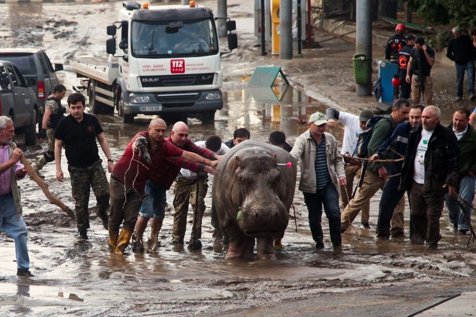 Бегемот Беги, неспешно гуляющий по затопленному проспекту Костава, стал тогда неожиданным символом того, как город пытается сохранить самообладание.