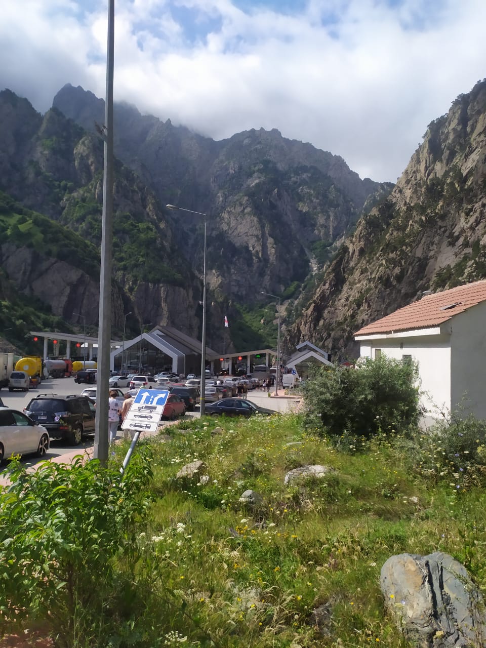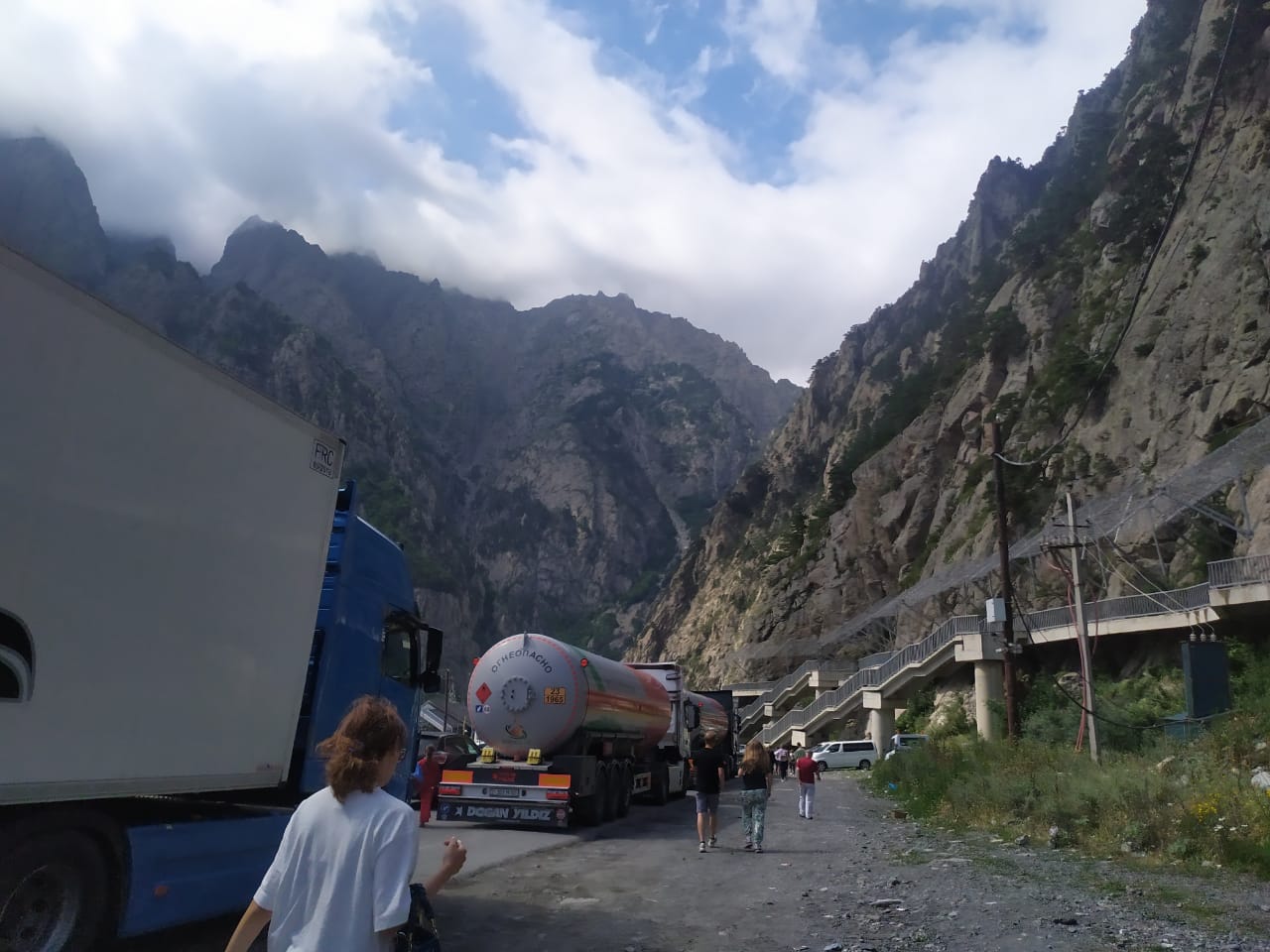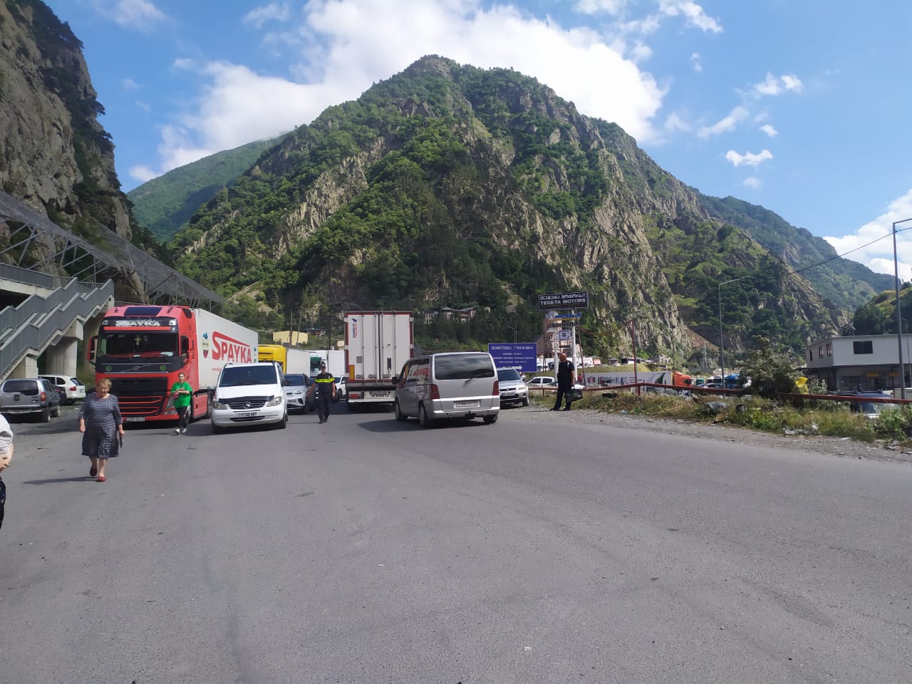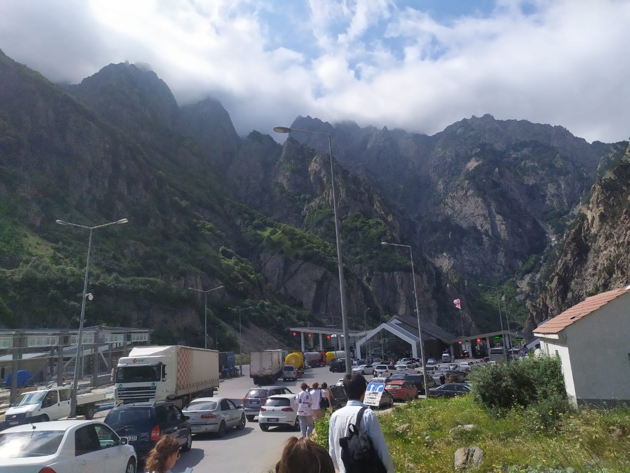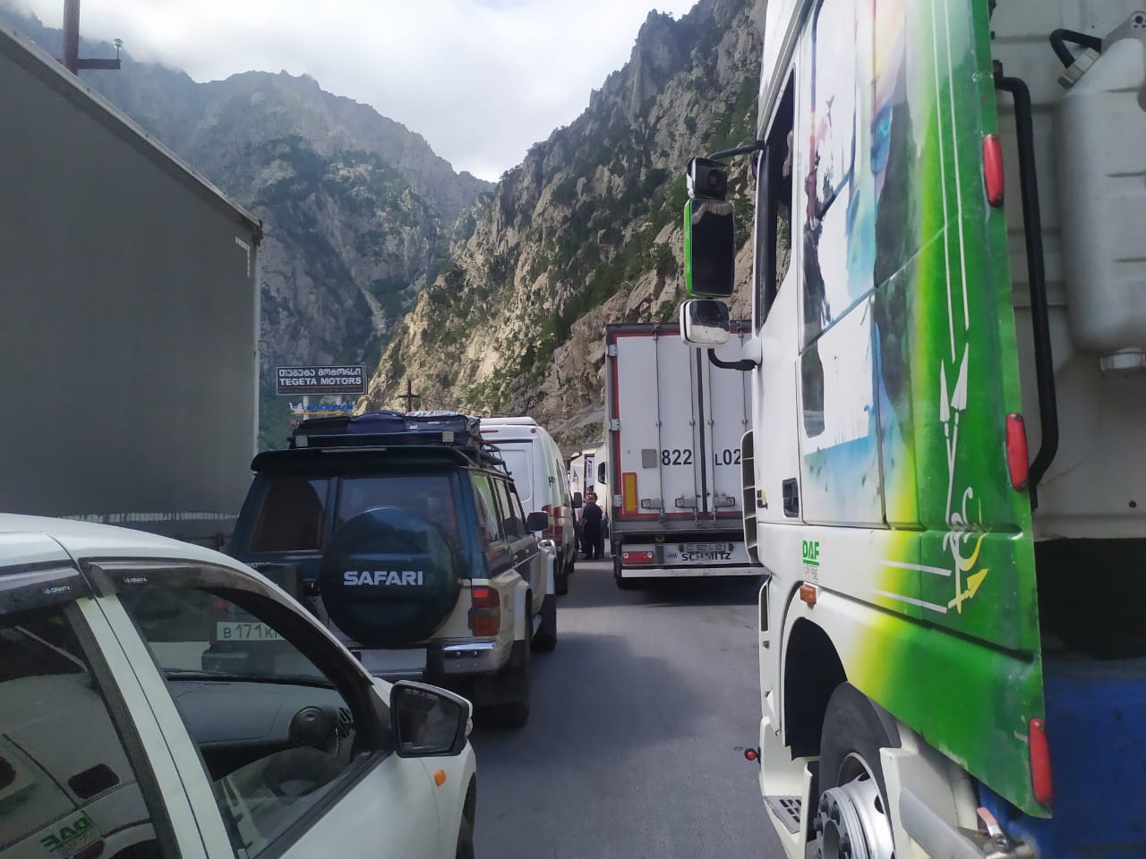 На ТПП «Казбеги» пропуска дожидаются сотни легковых машин, а очередь из фур начинается от села Натахтари примерно в 30 километрах от Тбилиси.