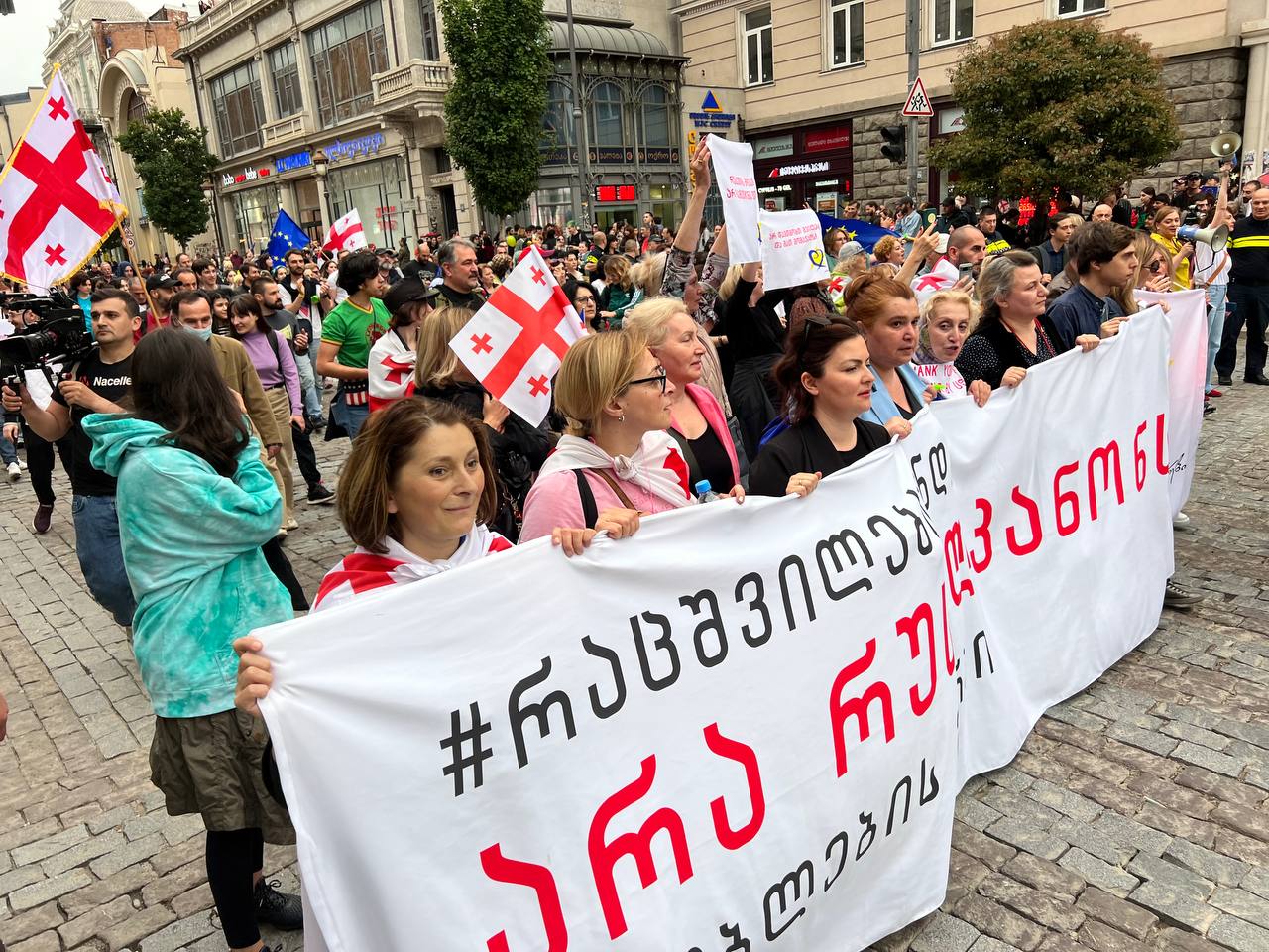ТБИЛИСИ, 11 мая – @NGnewsgeorgia. Участники «Европейского марша» с требованием отзыва законопроекта об иноагентах собираются на разных локациях в Тбилиси.