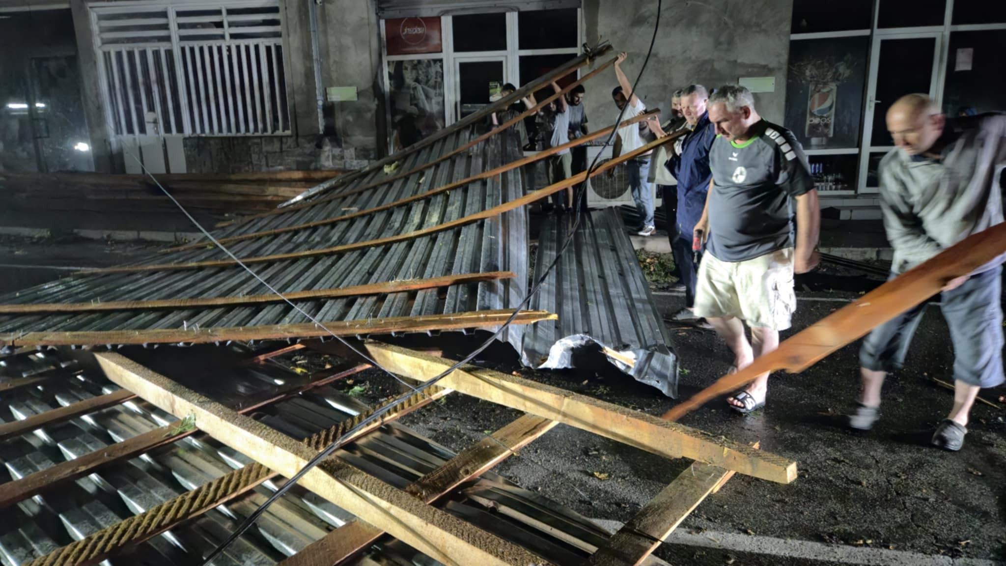 Буря ударила и по райцентру Ахмета. Там без крыш остались нескольких частных домов и коммерческих помещений. Ураган также повалил деревья и заблокировал автомобильные дороги.