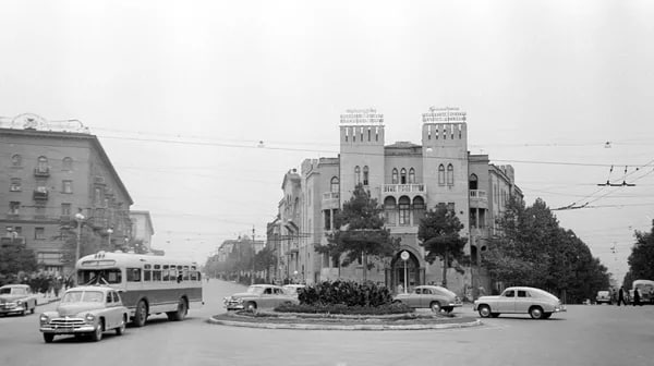 До начала 60-х годов прошлого века на этом месте стоял роскошный трехэтажный дом с башнями и элементами национальной архитектуры, так называемый «Алиони». Это было здание, построенное кооперативом во времена НЭПа, в 1928 году.